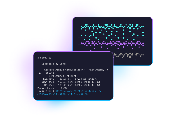 Speedtest CLI brengt de vertrouwde technologie en het globale servernetwerk achter Speedtest naar de opdrachtregel. Speedtest CLI is gebouwd voor softwareontwikkelaars, systeembeheerders en computerenthousiastelingen en is de eerste officiële Speedtest-toepassing voor Linux die wordt ondersteund door Ookla®